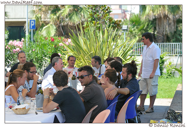Il pranzo è stato a base di pesce e non possiamo non dedicarla al grande Marco Rosetti (alias MarcoAP) che tanto si è prodigato per questo pranzo. La compagnia è stata splendida ed allietata dalla presenza di tanti moderatori del forum (Tuko, Alessandro Falco e Paolo Piccinelli) e di due ex moderatori (pfft e ***dani***), oltre a Marco AP ovviamente. E per la prima volta ad un evento patrocinato dal Magna Romagna hanno fatto la loro comparsa molti esponenti del settore dolce… era ora anche se… bisogna dirlo… gli acquari marini sono semplicemente più belli!!! 😉 spero abbiate colto la vena ironica della mia frase.