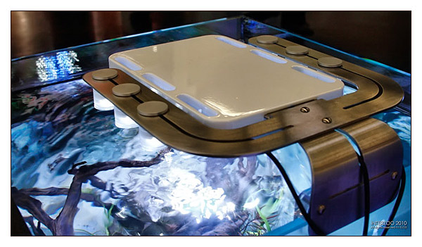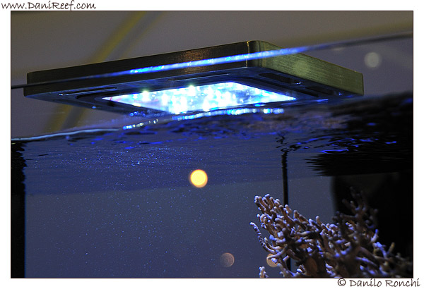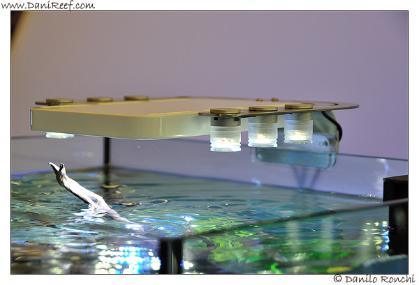 On the same SystemMini there is a new lamp, the Elos E-Luxe will soon be marketed, the lamp is built around the heart of HQi lamp, probably in three versions from 70 to 150 and to 250w, and it uses two E-stripe mounted transversely which reflect its light blue on the tank. It will be a version where the users will be pay less for an Elos Quality, without buying the wonderful E-Power with Manta or the Planet.