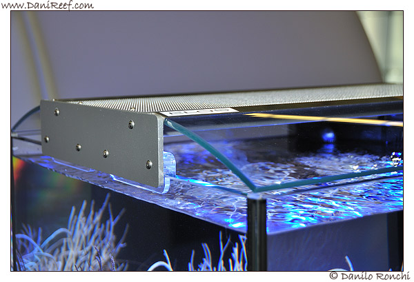 And from the E-spot we have to pass to the latest led bars, the E-stripe, present in two variations, with 9 leds, 1735 lumens, 53 cm and 21 watts and with 15 leds, 2880 lumens, 88 cm and 34 watts. The first bar to take the place of blue neon lights from 39 watts and the second to take the place of neon 54 cm. The friend Zanna Bianca has brought home a bar from Interzoo, I will tell you how functioning in its new tank 🙂 The same bar E-stripe can fit in the new beautiful Aquatop cover, designed to cover aquaria that length of 60 and 120 cm. The solution is, in my opinion very elegant and functional … if I were not fallen in “love” of hard corals SPS would say that I would already ordered one!