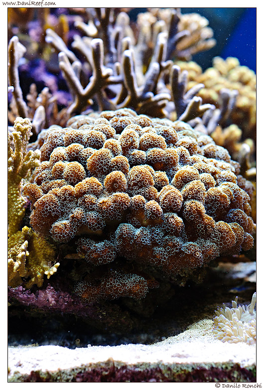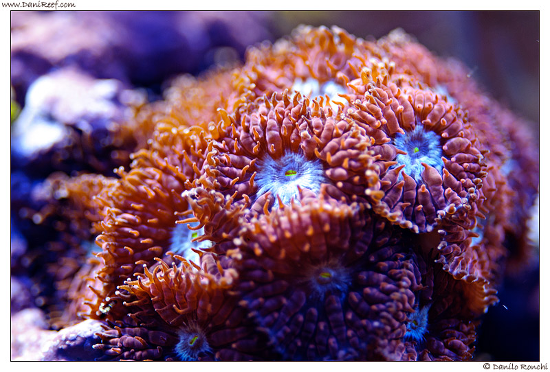The aquarium maintenance is extremely simple, as Cristiano performs quite large weekly water changes of about 90 liters, with mixed salts Kent, Elos, Reef Cristal, Red Sea, etc.. Move the zeolite 2 times a day and replace it every two months, but does not use trace elements instead of using large number of bacteria of different brands each week in high quantities, during the administration of bacteria tells us how the corals, especially lps take out their tentacles , and became convinced that the bacteria mainly serve as food for the corals, and seeing his results we must believe it!