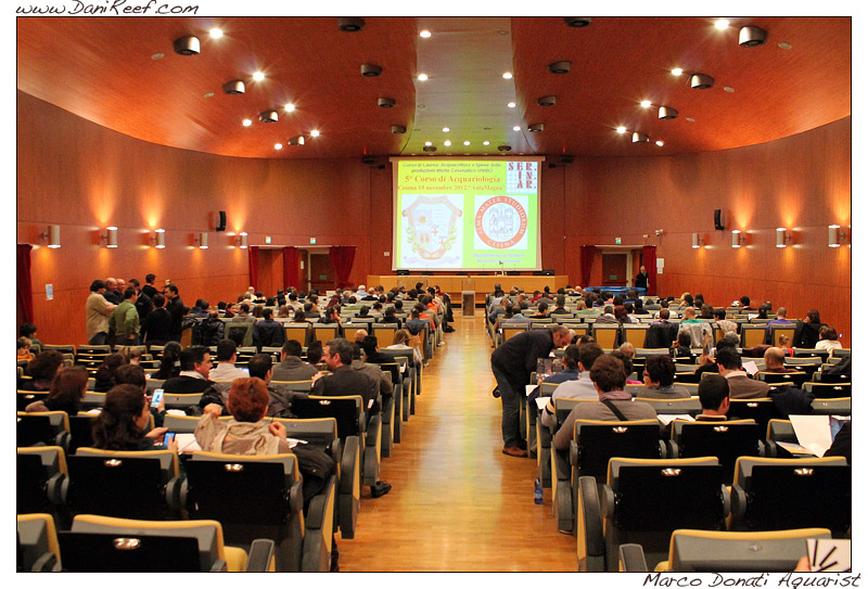 Siamo entrati all’università dopo una breve attesa a cospetto di una lunga fila per la registrazione dei partecipanti per poi salire nella maestosa aula magna della facoltà e di lì a poco il dott. Mosconi, responsabile del corso di Acquariologia, ha ringraziato per la notevole partecipazione da parte degli acquariofili e dei semplici appassionati provenienti da tutta Italia per seguire il corso.