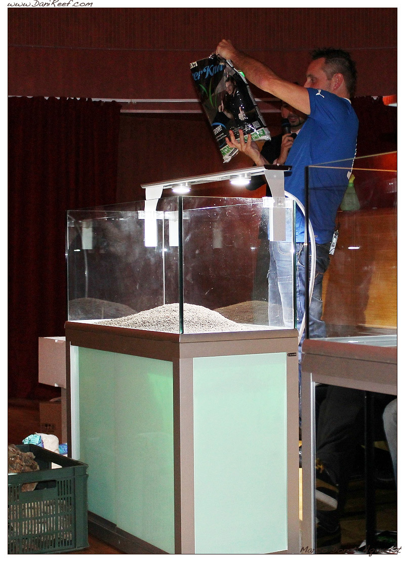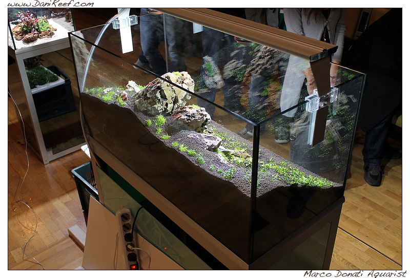 Terminata la relazione del dott. Donati finalmente si passò a qualcosa di pratico, l’allestimento in diretta di un acquario con la tecnica dell’aquascaping da parte del famoso aquascaper tedesco Oliver Knott.