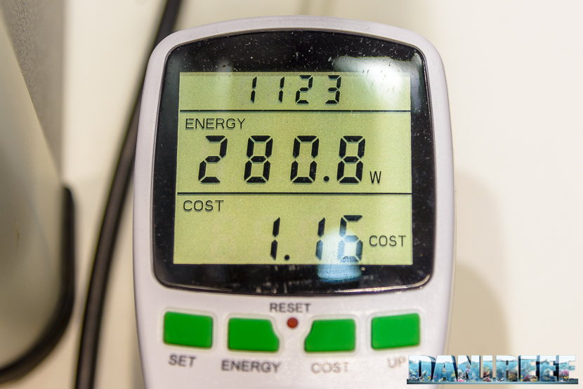 In pratica dai 420 watt del TR20 si passa ai 302 del TK 1000 ed ai 283 del TK 1000 con ventola elettronica. La resa in raffreddamento è di 630 watt per il TR20, e 604 e 622 rispettivamente per i due TK. La differenza è incredibile e sotto abbiamo fotografato i due display dei misuratori di corrente.