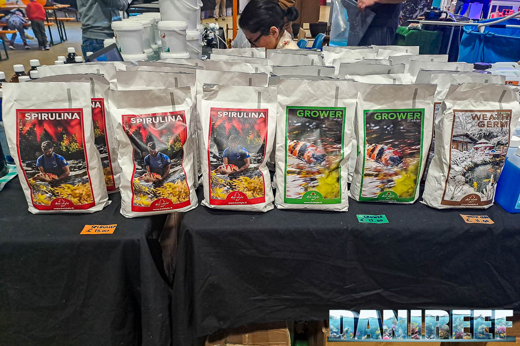 Oltre ai pesci era esposta una linea di mangimi appositamente studiata da Giacomo per il nutrimento delle Koi, gli ingredienti utilizzati sono di ottima qualità.