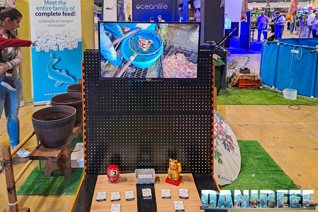 Lo stand Koi Style richiamava il Giappone oltre alle stupende Koi erano presenti dei colorati Medaka e dei bellissimi Shubunkin. Lo spazio espositivo era caratterizzato dalla presenza di vasche molto grandi con delle pompe che pompe che muovevano l’acqua. Nell’altro lato invece erano posizionati dei vasi da giardino in stile giapponese che contenevano dei coloratissimi Medaka.