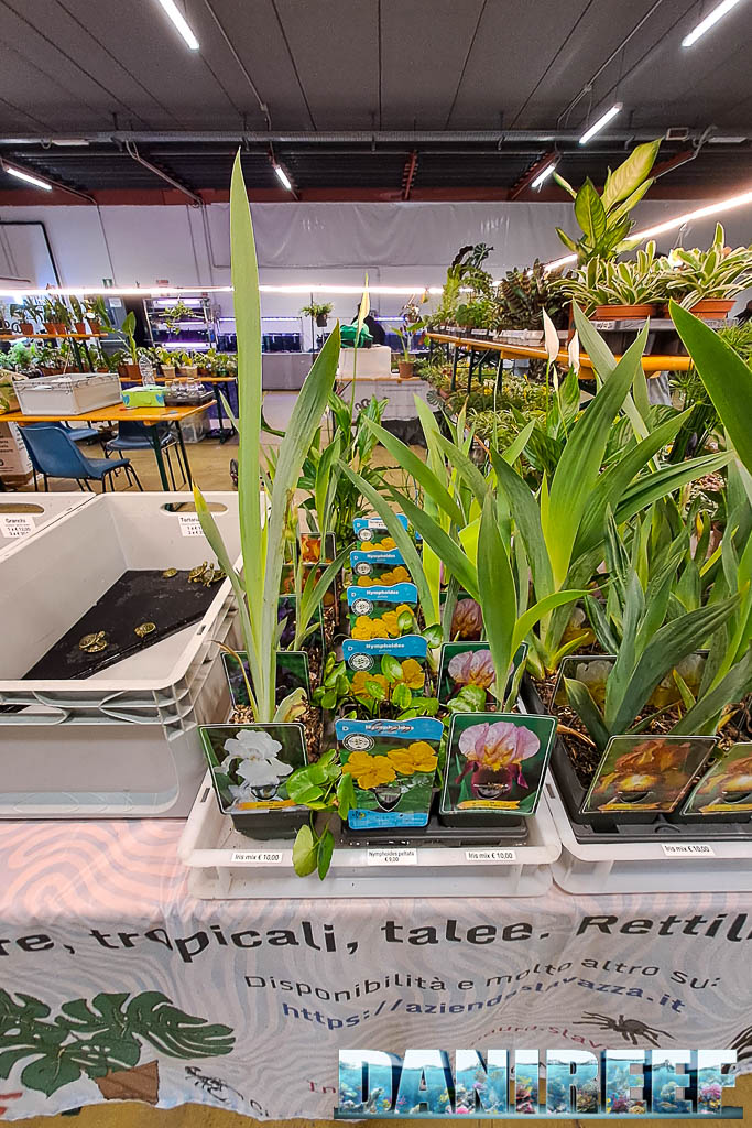 Lo stand dell’azienda agricola Slavazza spiccava per dimensioni, vivacità e varietà. Diviso in due aree principali, una dedicata alle piante tropicali e una ai pesci d’acqua dolce, offriva uno spettacolo affascinante per tutti i visitatori.