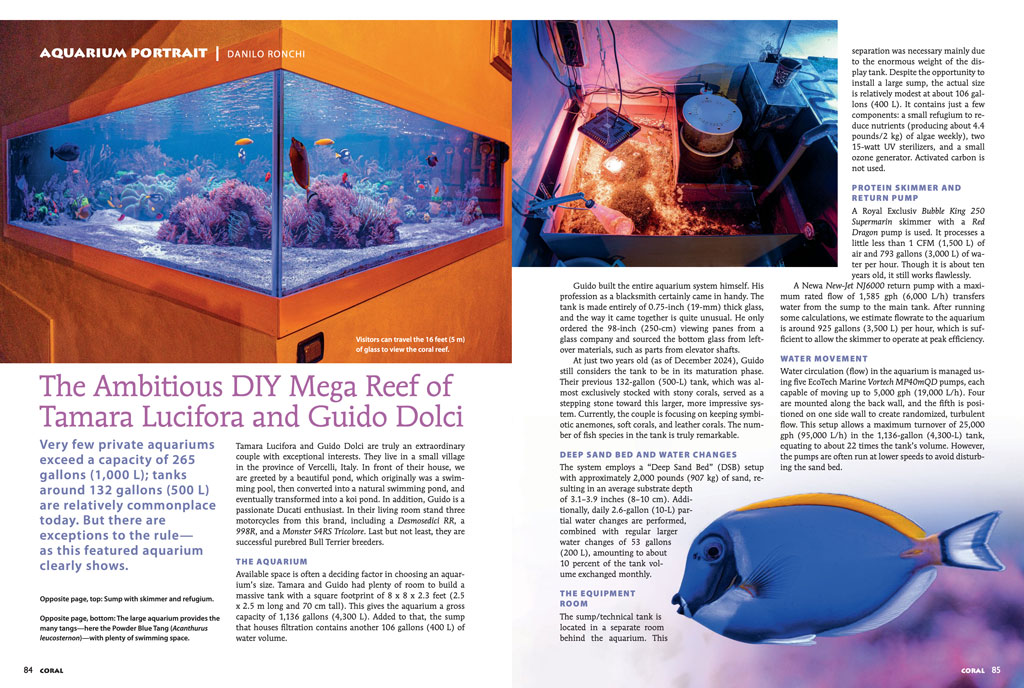 Prosegue la collaborazione fra DaniReef e la rivista americana Coral Magazine. Questa volta l’occasione è la pubblicazione del nostro articolo del bellissimo acquario marino di Tamara e Guido. Il loro acquario marino è qualcosa di unico e spettacolare, per la cura in tutto il progetto e per una autocostruzione di un acquario enorme che non può lasciare indifferenti. E tutto questo non può non meritare il giusto riconoscimento internazionale.