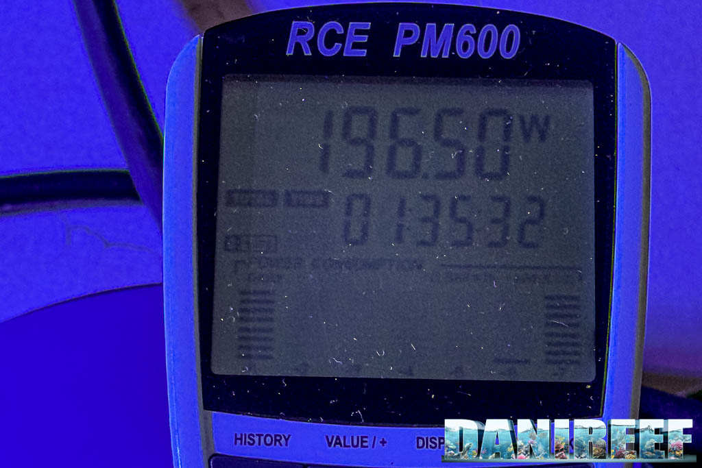 I valori sono molto buoni per acquari fino a mantenere SPS che per mantenere qualsiasi altra cosa. Accoppiando più plafoniere si può poi allevare di tutto con ogni colorazione possibile. Io consiglierei 2 plafoniere in 120 cm e 3 in 180, e rispettivamente 3 o 4 per ottenere il massimo e spingersi dove altre plafoniere non possono arrivare. Ovviamente se considerassimo SPS esigenti la fascia centrale sarebbe da preferire visto il calo fisiologico centro-bordi e l’inclinazione della luce. La potenza sviluppata è molto buona soprattutto in alto, come è ovvio che sia. Aumentando la profondità , la potenza cala per raggiungere una maggior copertura, che si mantiene sempre piuttosto ampia. I dubbi, visto l’alto consumo, sono sulla tenuta nel tempo e nella mancanza di omogeneità fra plafoniere uguali. Ricordatevi però che non è una Radion, lo spettro è diverso così come i canali.