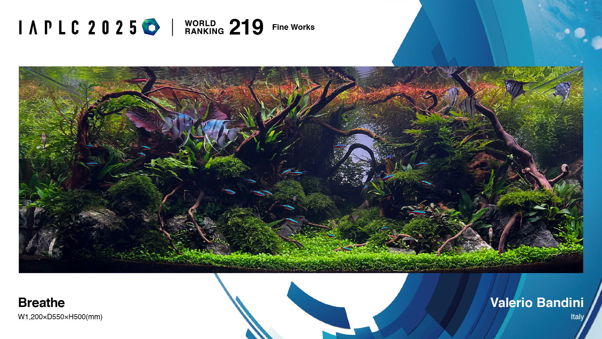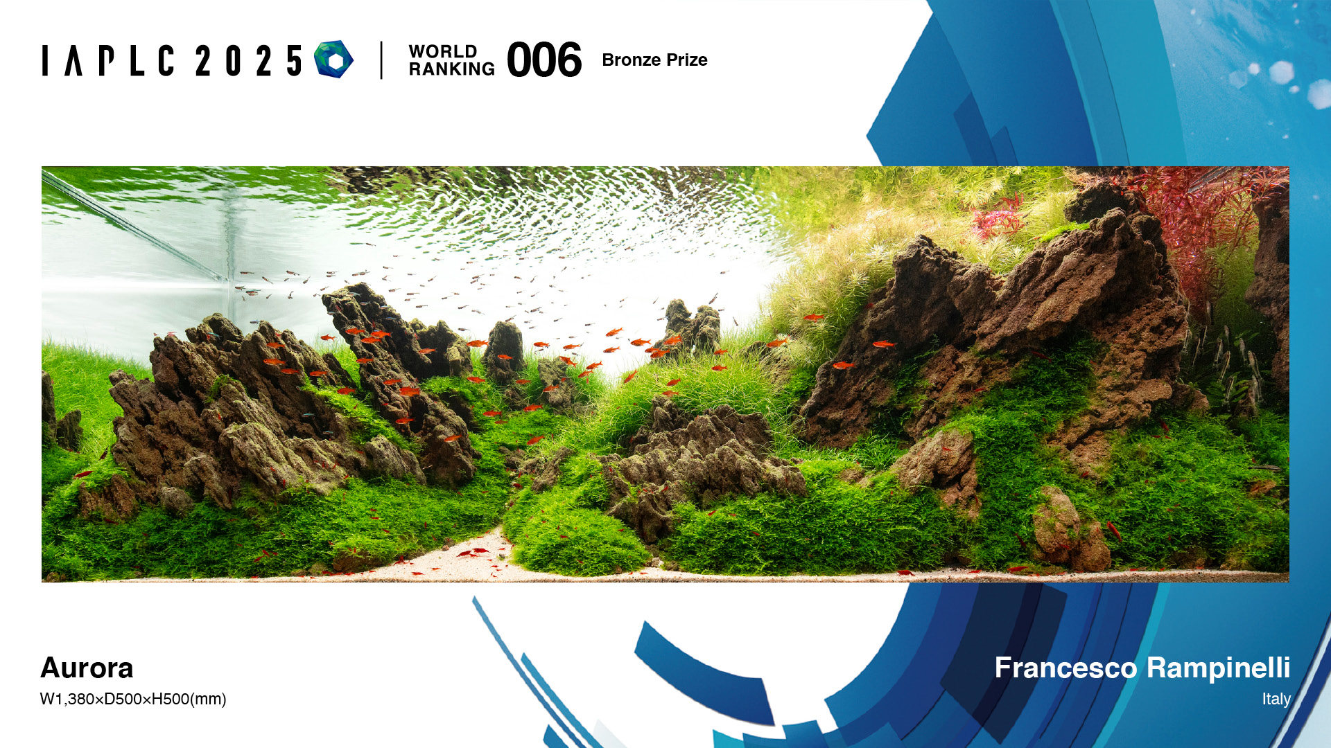 L’IAPLC2025 è il concorso mondiale di aquascaping più prestigioso organizzato da ADA (Aqua Design Amano). Nel 2025 ha visto la partecipazione di oltre 1.500 layout da 77 paesi. Tra questi, l’Italia emerge con Francesco Rampinelli, che si è piazzato al 6° posto mondiale, un risultato straordinario per la nostra scena.