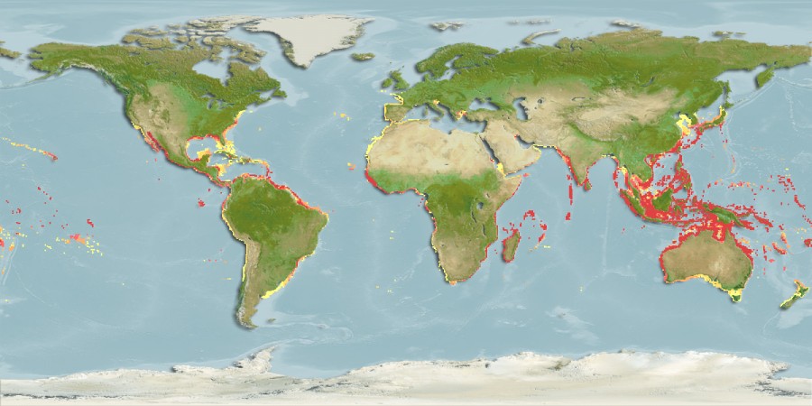 Pterois volitans is native to the Indo-Pacific, from the coasts of East Africa to the Hawaiian Islands. Since the 2000s it has become invasive in the Caribbean, the Western Atlantic, and even the Mediterranean, where it seriously threatens local ecosystems due to the absence of natural predators.