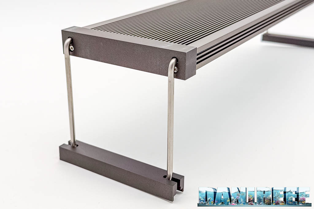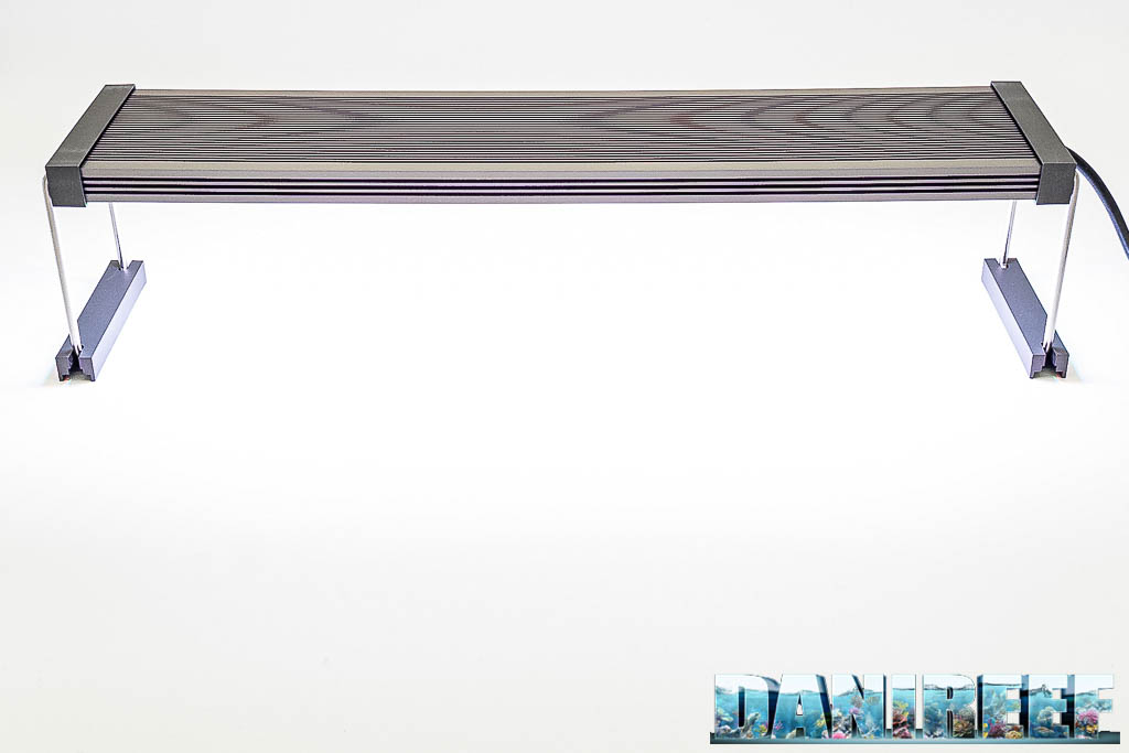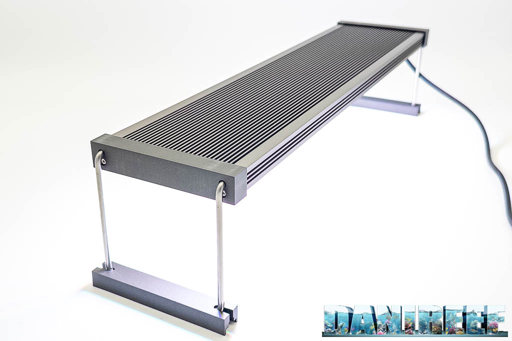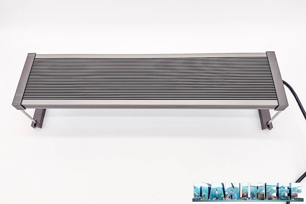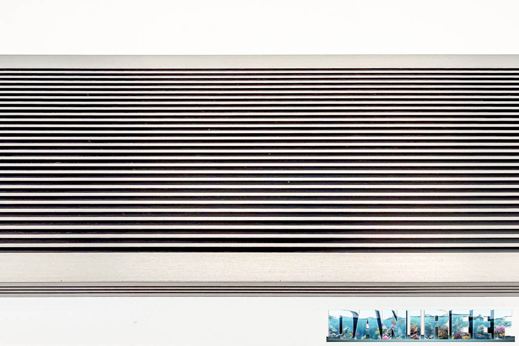 La Twinstar S-Line V si presenta con un design minimale e robusto, corpo in alluminio anodizzato senza ventole (quindi totalmente silenziosa) con finitura premium in Titanio, e supporti laterali metallici. È compatta e pensata per acquari fino a circa 36 cm di larghezza.
