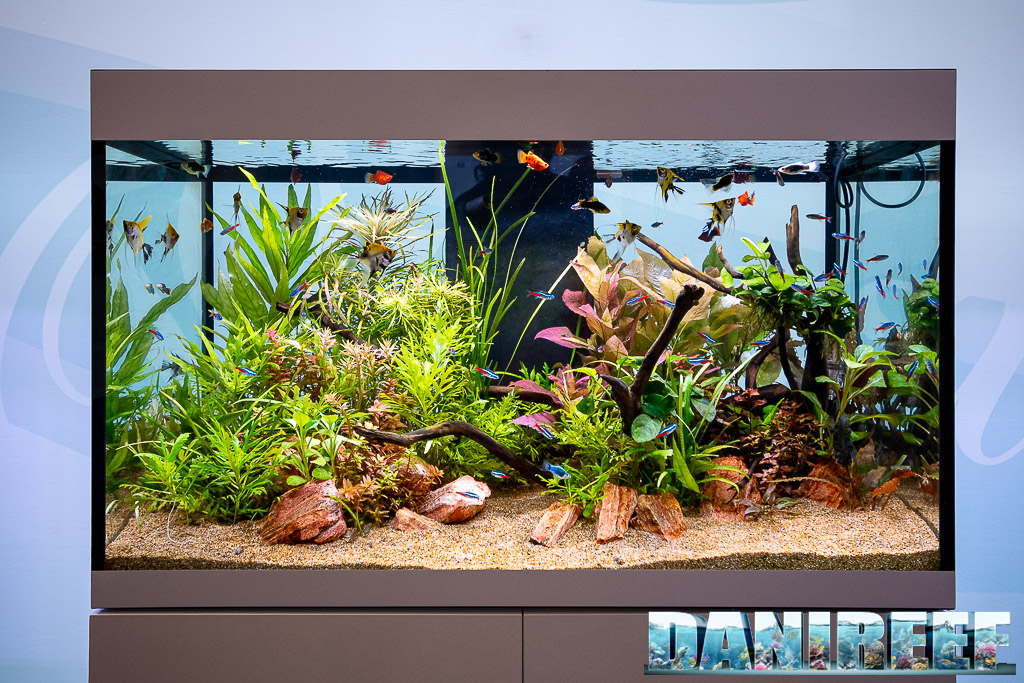 L’illuminazione è una delle variabili più sottovalutate nei primi 100 giorni. Con i LED moderni è meglio partire con 6 ore al giorno, tenendo bassi rosso e verde e aumentando gradualmente. Nei layout che abbiamo documentato nelle fiere, negli acquari e nei negozi specializzati, le piante a crescita rapida come Hygrophila, Limnophila e Ceratophyllum sono quelle che stabilizzano più rapidamente il sistema perché consumano ammonio e nitrati, competendo con le alghe e migliorando la trasparenza dell’acqua.