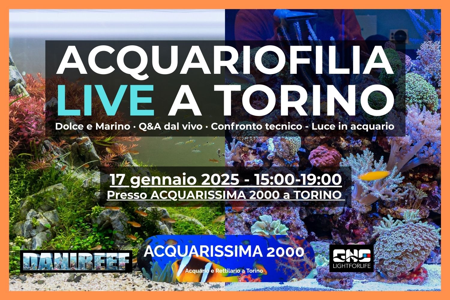 Sabato 17 gennaio 2026 DaniReef vi dà appuntamento a Torino per un nuovo evento dal vivo dedicato all’acquariofilia dolce e marina, ospitato presso il bellissimo negozio Acquarissima 2000.