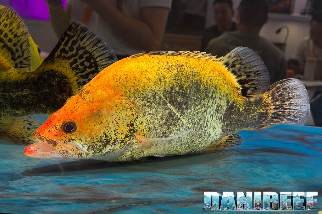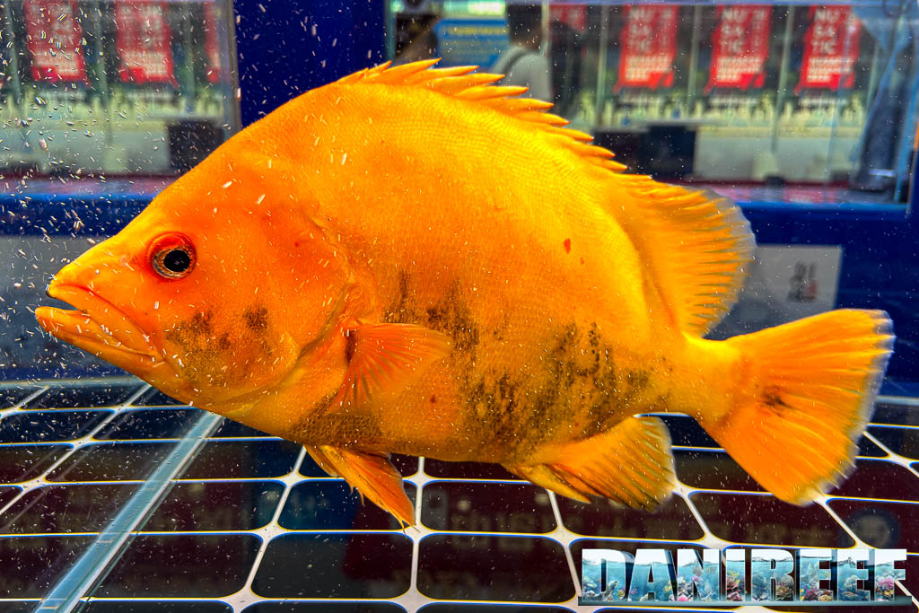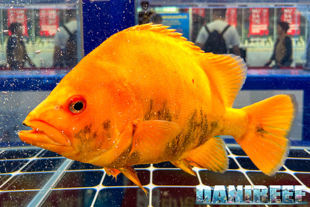 In particolare, uno degli esemplari più impressionanti visti in fiera è stato un Siniperca dalla livrea arancione intensa sul muso, un colore rarissimo per questo genere, che trasformava il pesce in qualcosa di quasi irreale. Non si trattava solo di una mutazione cromatica spettacolare, ma di un animale perfettamente proporzionato, con postura, calma e controllo del movimento che trasmettevano immediatamente la sensazione di trovarsi davanti a un esemplare fuori scala.