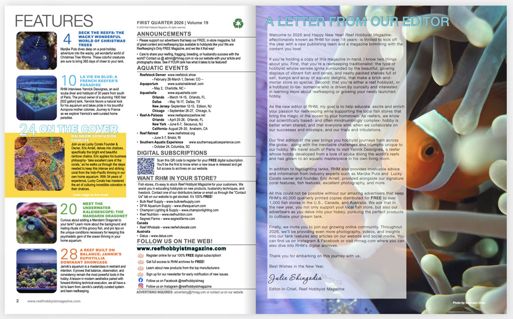 Come sottolinea l’editor Julie Shingadia nella lettera di apertura, l’obiettivo è continuare a educare, ispirare e far crescere la comunità reef, condividendo esperienze, successi e anche le difficoltà che ogni appassionato incontra nel proprio percorso.