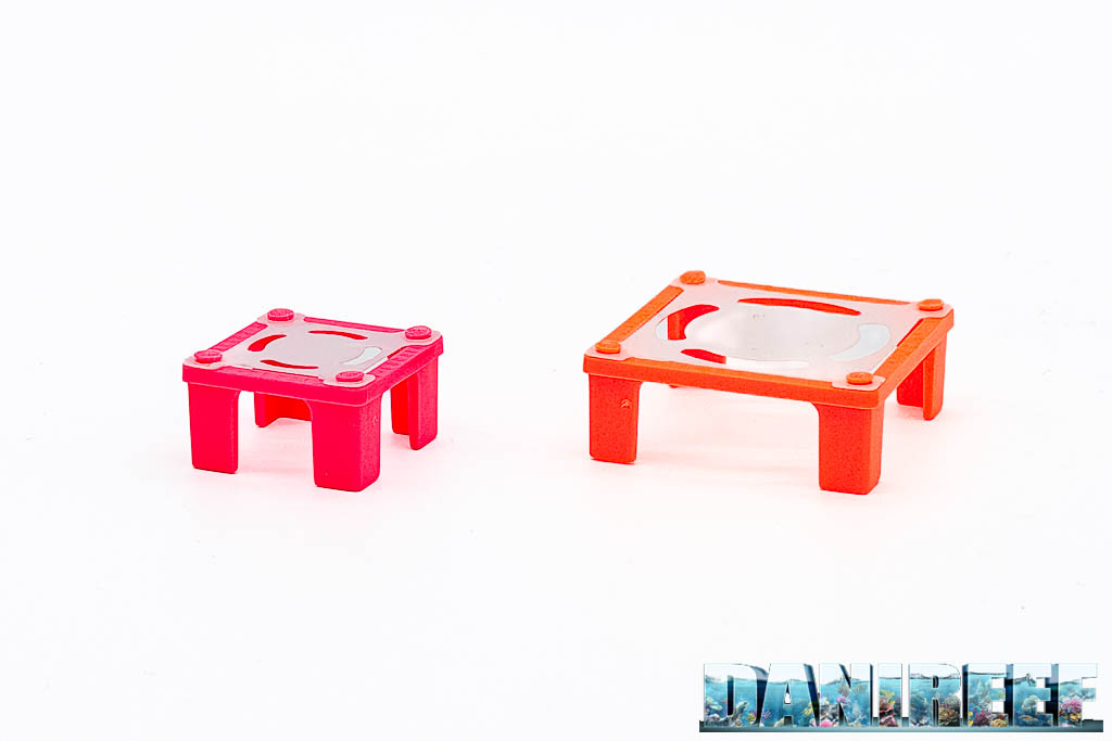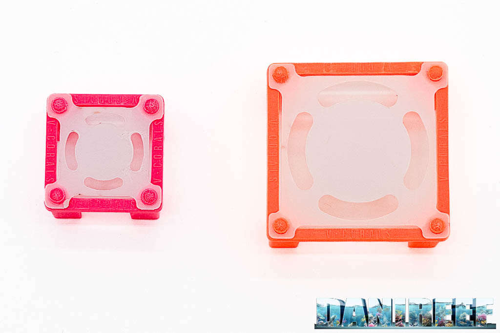 I plug sono stati progettati per integrarsi perfettamente con il sistema V-Rack di V-Corals, ma possono essere utilizzati anche con le classiche griglie da accrescimento con celle da 13×13 mm, molto diffuse nei taleari.