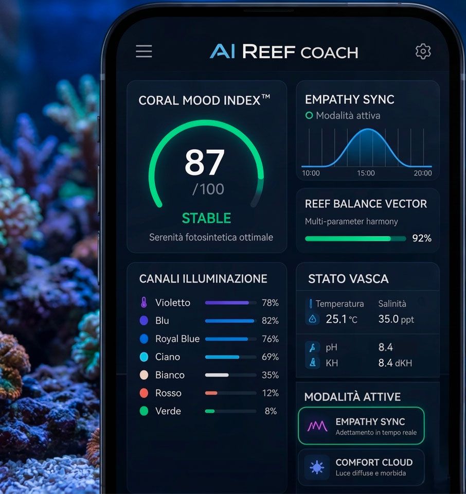 - AI Reef Coach Pro: gestione multi-colonia e Coral Mood Index avanzato;