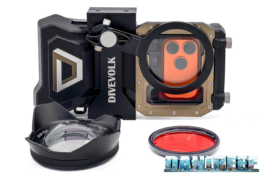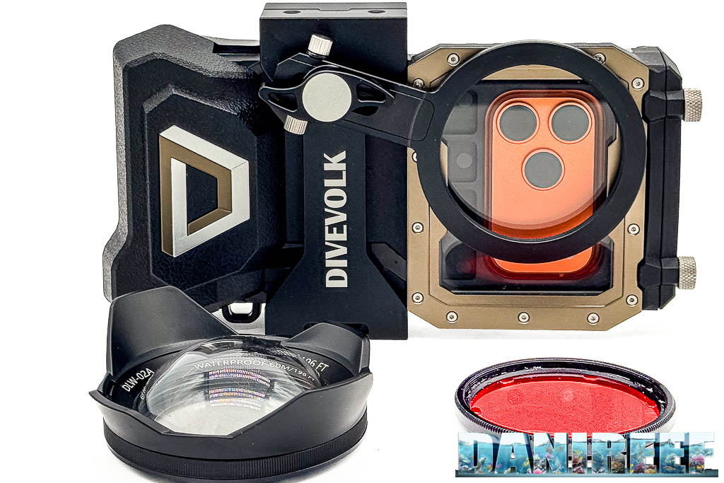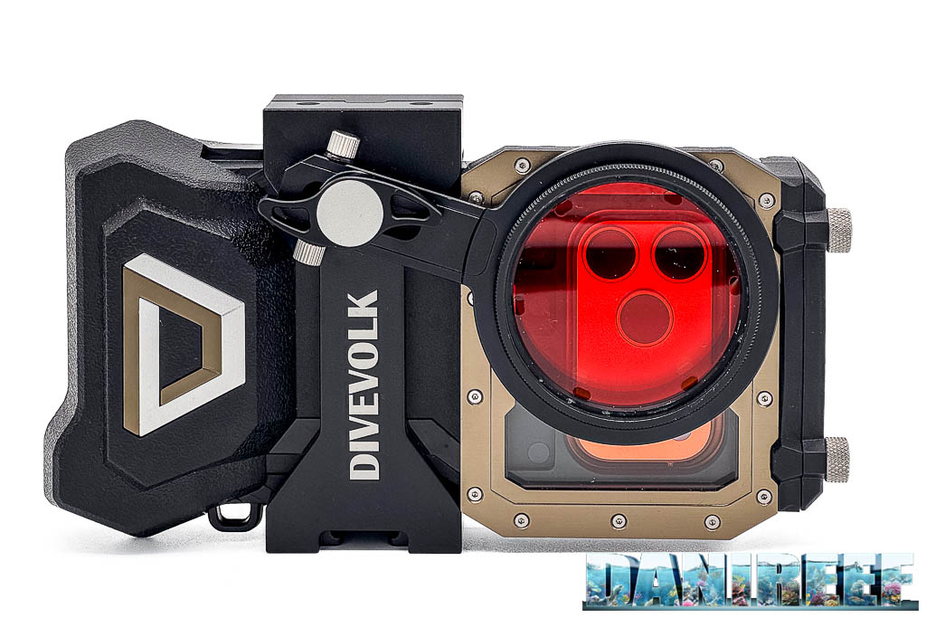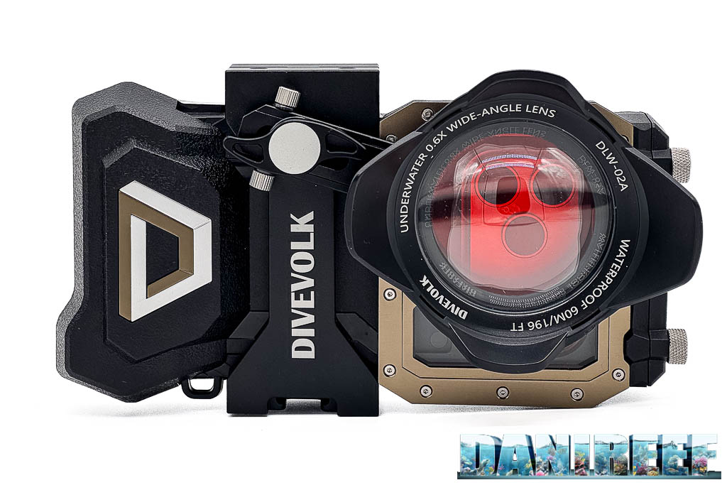 DiveVolk offre anche una serie di accessori interessanti. Fra questi troviamo il supporto frontale filettato per filtri, la possibilità di usare filtri correttivi, e accessori come il dome, più pensati per paesaggio subacqueo e riprese in mare che per l’uso in acquario.